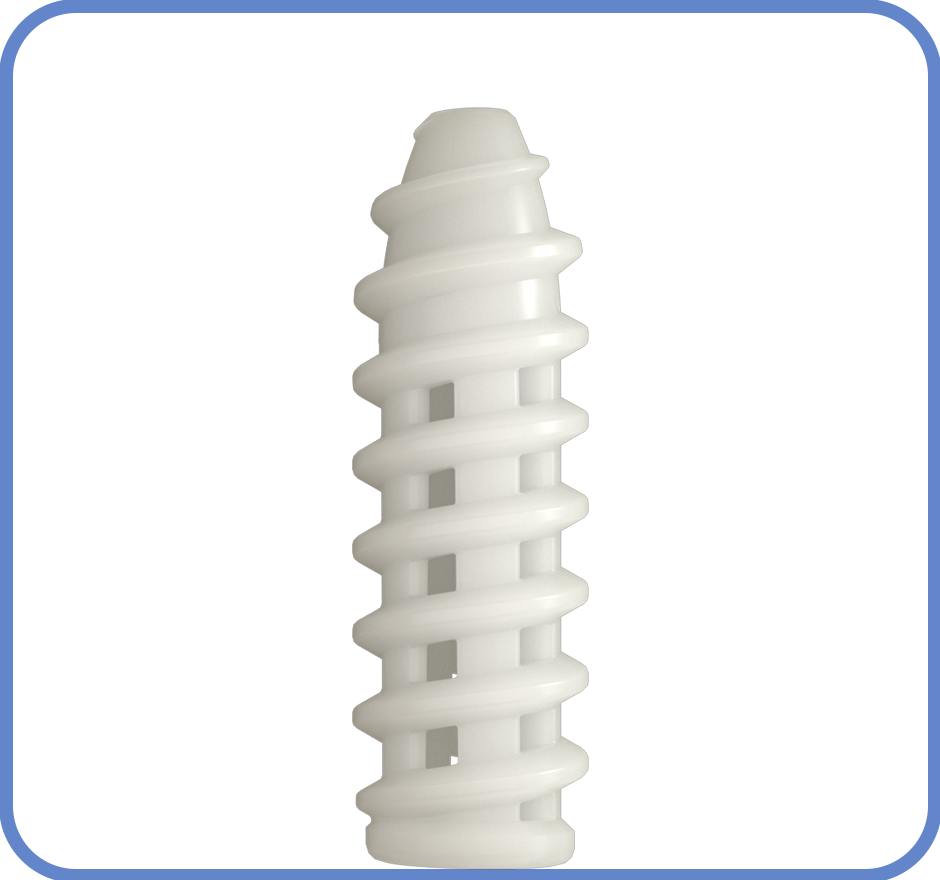 sysorb® screw has been designed with four features: Turbine tulip-like drive; hollow perforated lateral; incremental screw body; blunt thread.